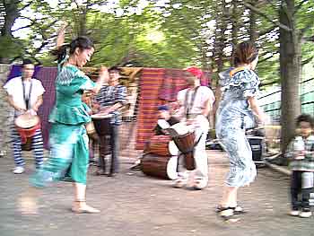 アフリカン・ダンス&パーカッションのTILE2 (ティレ・フィラ)は、特に素晴らしく、ミニ・ダンス・レクチャーはとても楽しかったです。<写真 右>