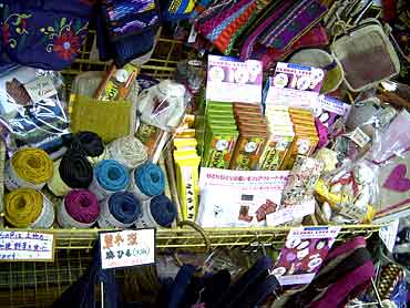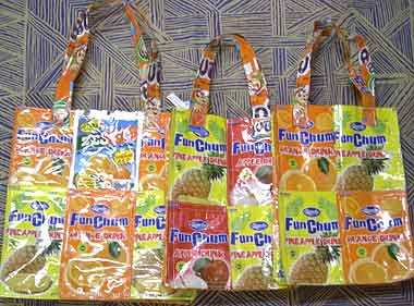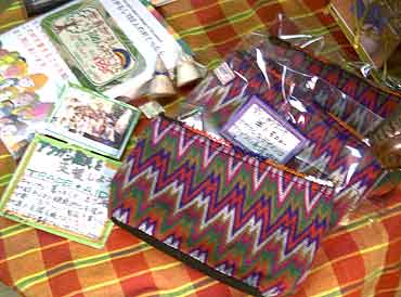 アフガン難民女性の手作りによるカラフルなポーチ=\1,500